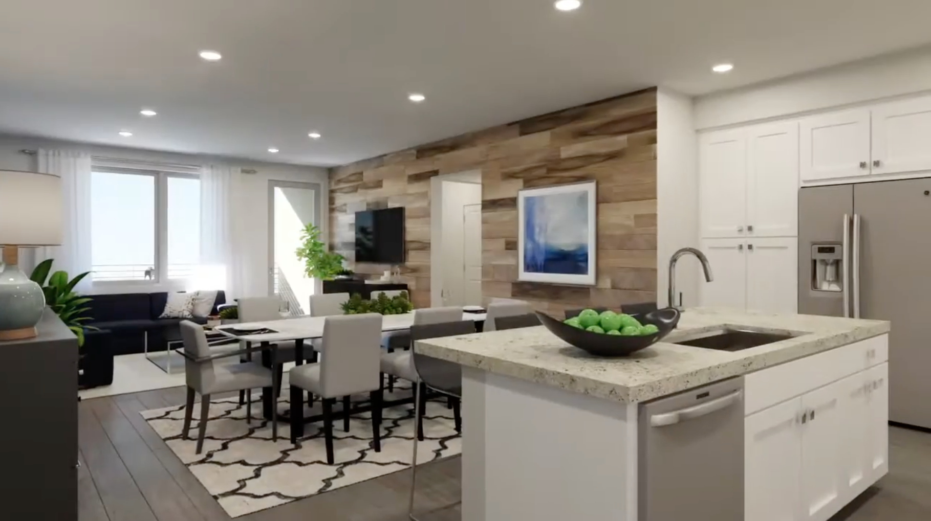 - Open layout with large kitchen island